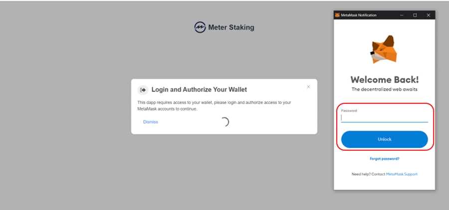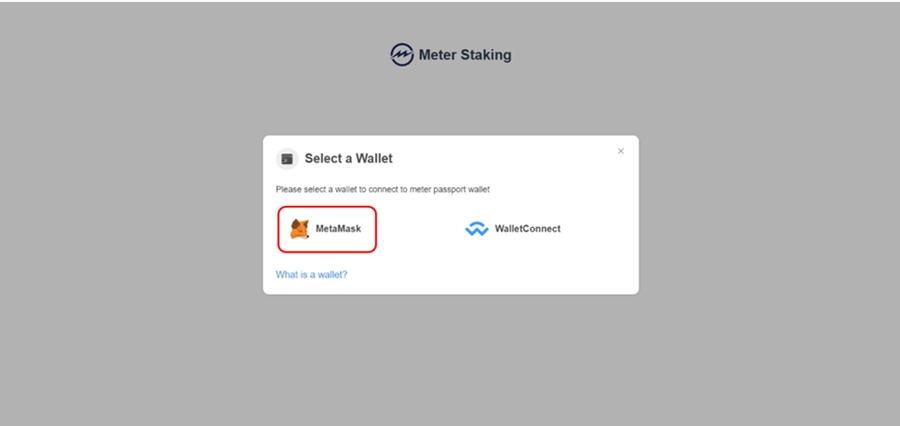 Access staking.meter.io and connect to MetaMask wallet with the requisite address
