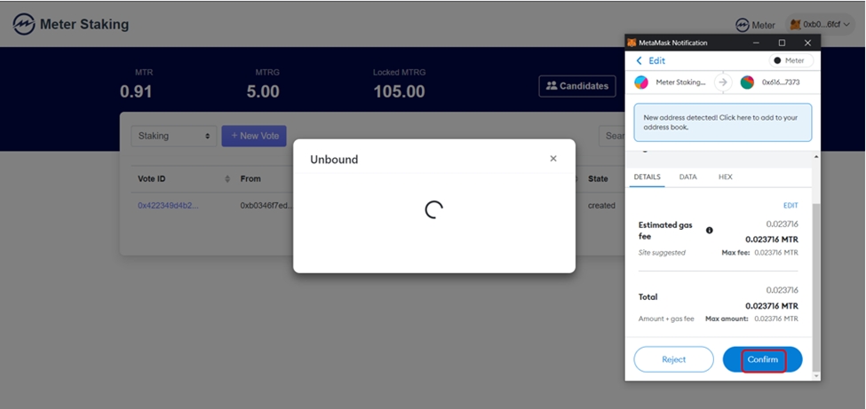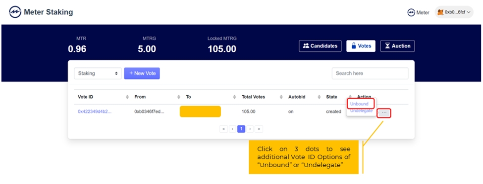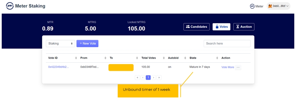 Note: Please track the ‘state’ column on the Vote ID to track the latest status of the unbound process