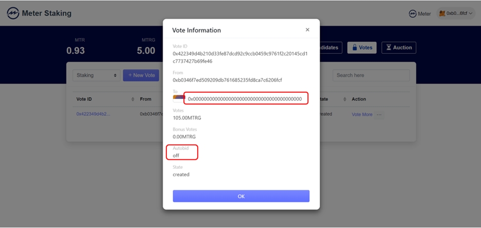 Note: The Vote ID loses the bonus votes on “Undelegate”