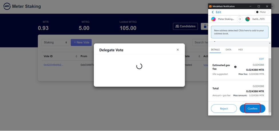 “Delegate” on the existing Vote ID to vote on a new candidate